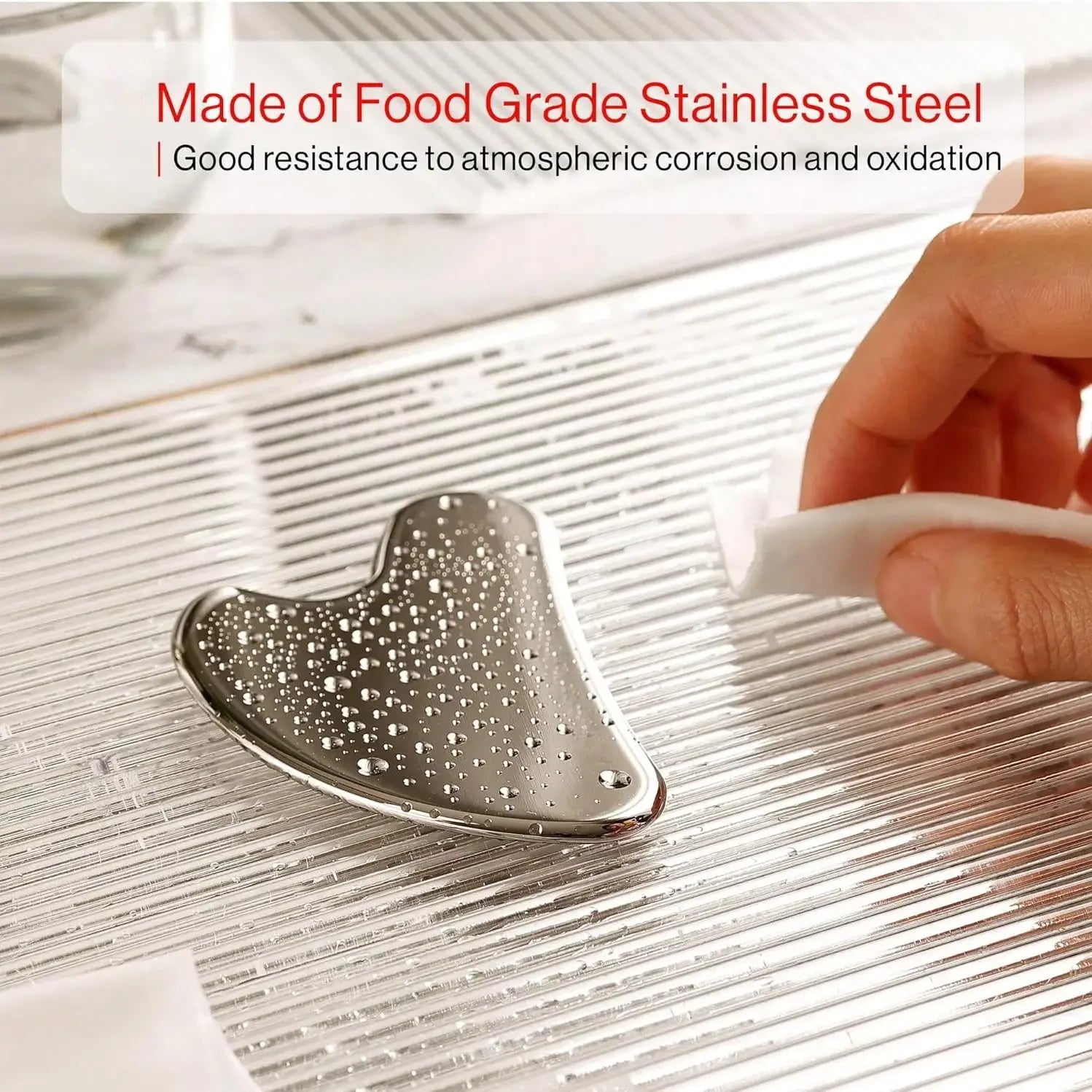 ⚙️ Stainless Steel Gua Sha — sculpts jawline, releases facial tension, boosts circulation